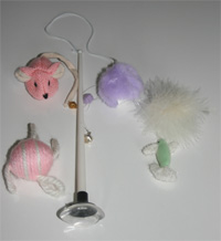Set contains: suction cup dangler; wool mouse and yarn ball.